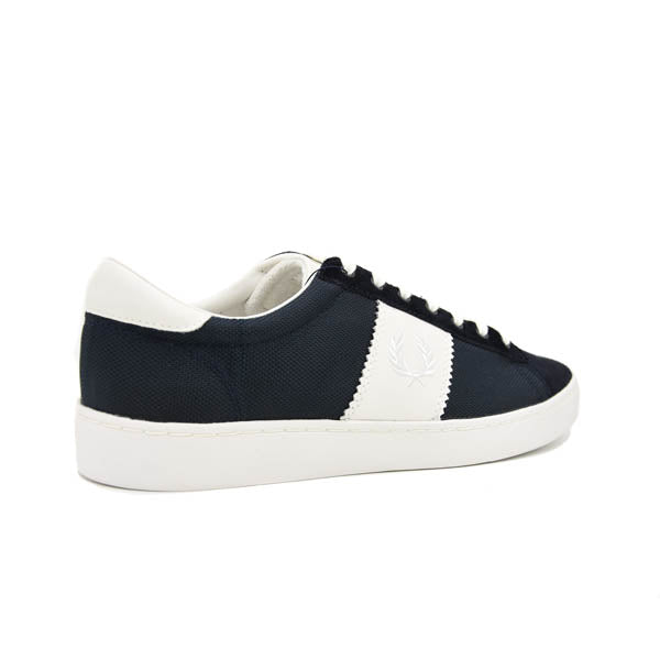 Baskets Fred Perry en tissu avec fermeture à lacets, empiècement en cuir avec logo, intérieure en cuire.