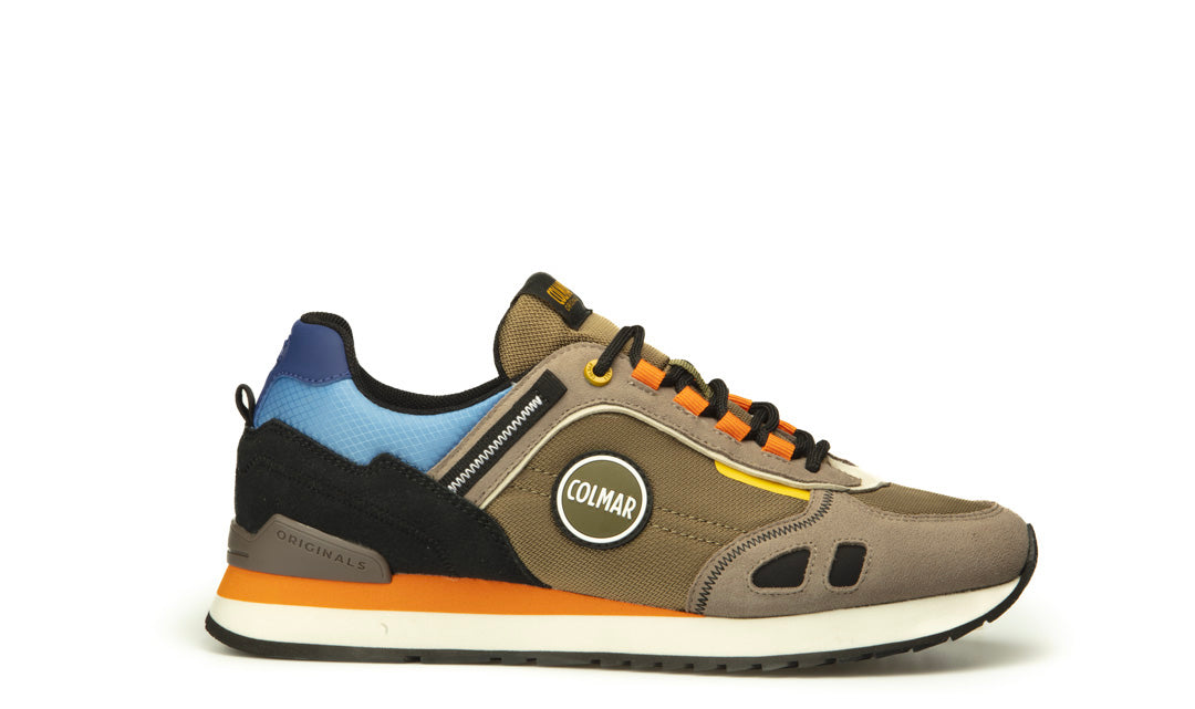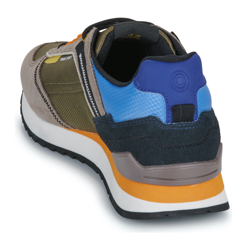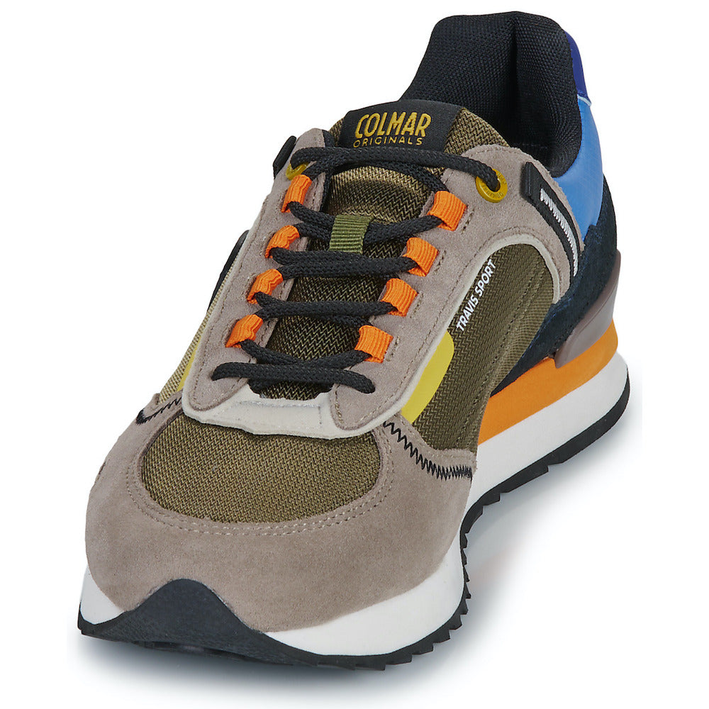 Les baskets baskets pour homme Travis Sport Flash 017 sont un modèle iconique de la marque Italienne COLMAR avec ses couleurs Kaki, bleu , noir et orange