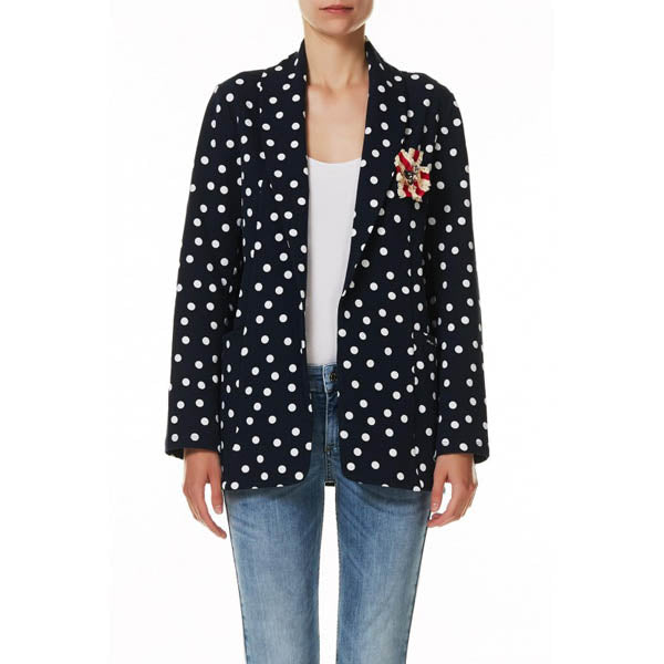 Le blazer Liu Jo est muni de 2 poches plaquées, une fermeture par boutons, col blazer,et un magnifique imprimé pois.