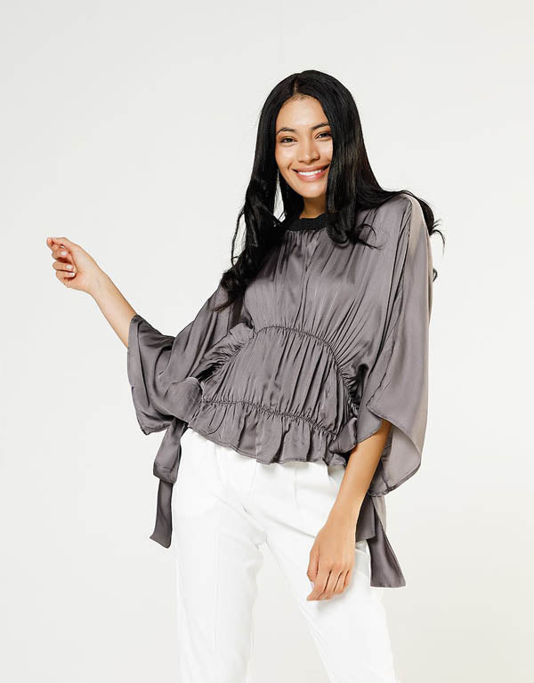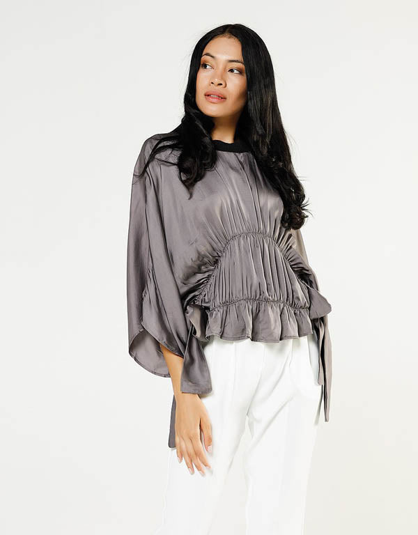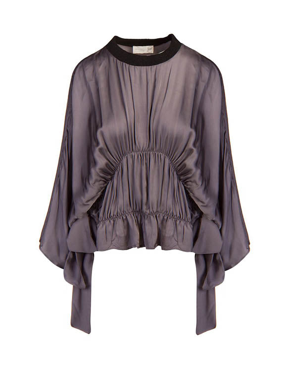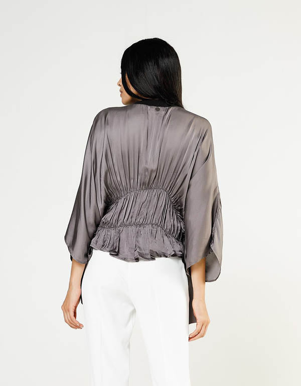 Raffinée et féminine, la blouse BSB possède des manches 3/4, une taille smockée et un col rond contrastant.