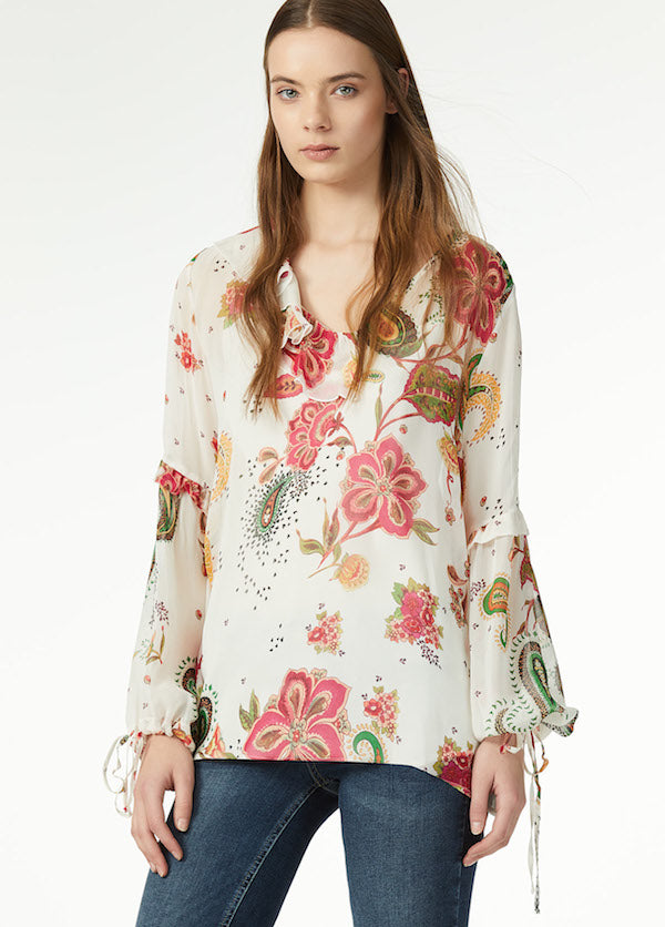 Avec son imprimé fleuri, la blouse Liu Jo rappelle le style des années 70. La blouse Liu Jo possède un col large avec fronce, et des manches longues amples.