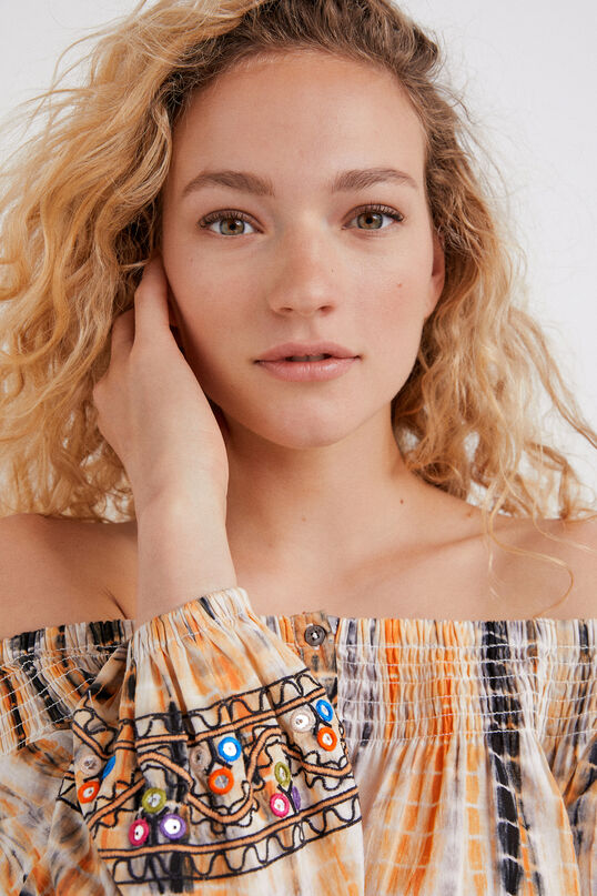 Avec ses manches 3/4 ornées de broderies colorées, la blouse signée Desigual est élégante.