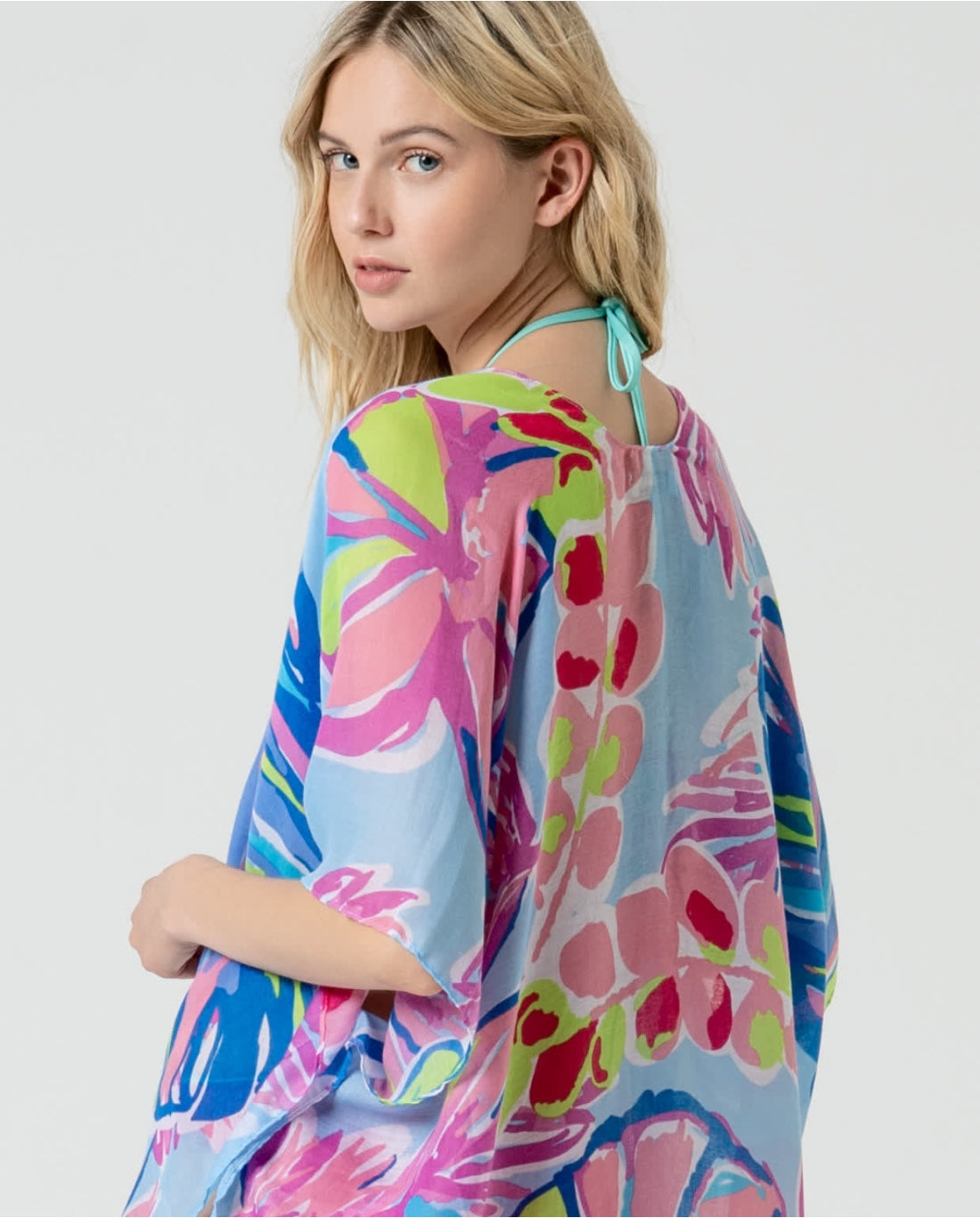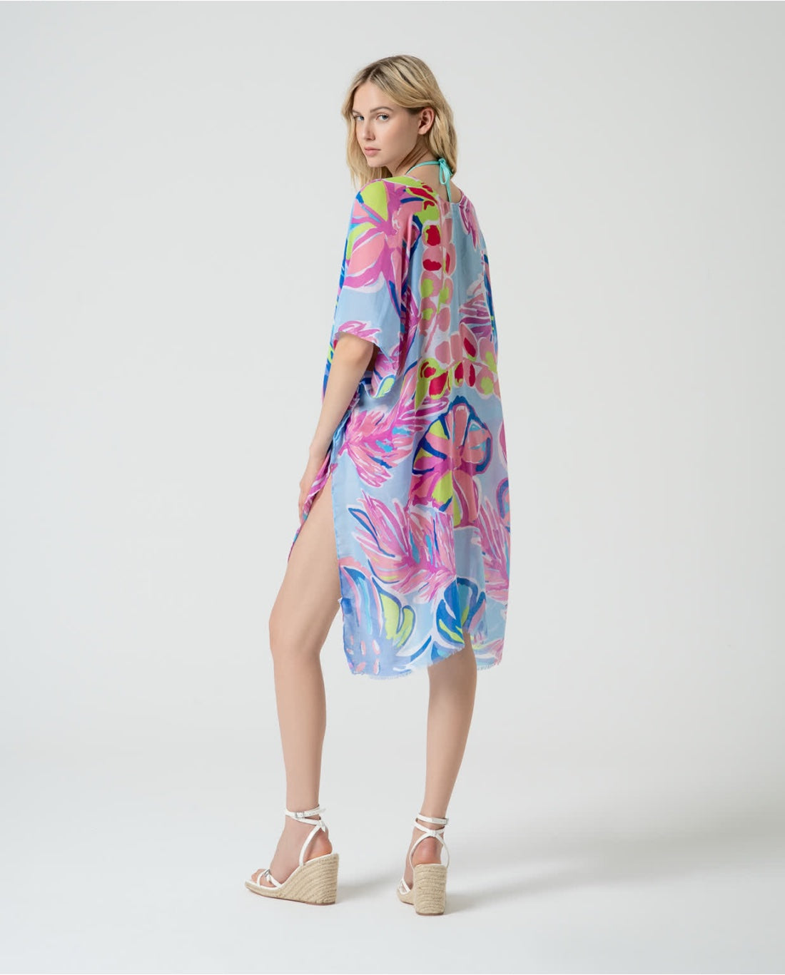 Superbe caftan tunique rose et bleu avec col V en tissus fluide et léger de chez Surkana 35PAYI821 50