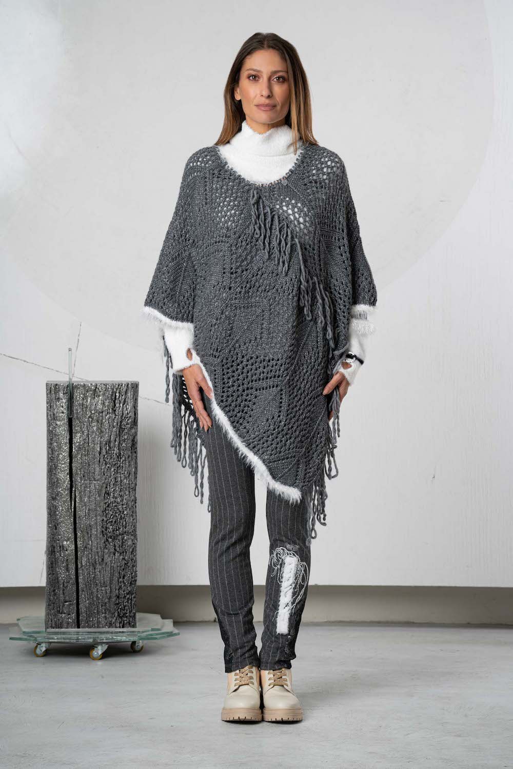 Le poncho vous est présenté ici sur le pantalon Elisa Cavaletti slim également disponible sur notre site lessculpteurs