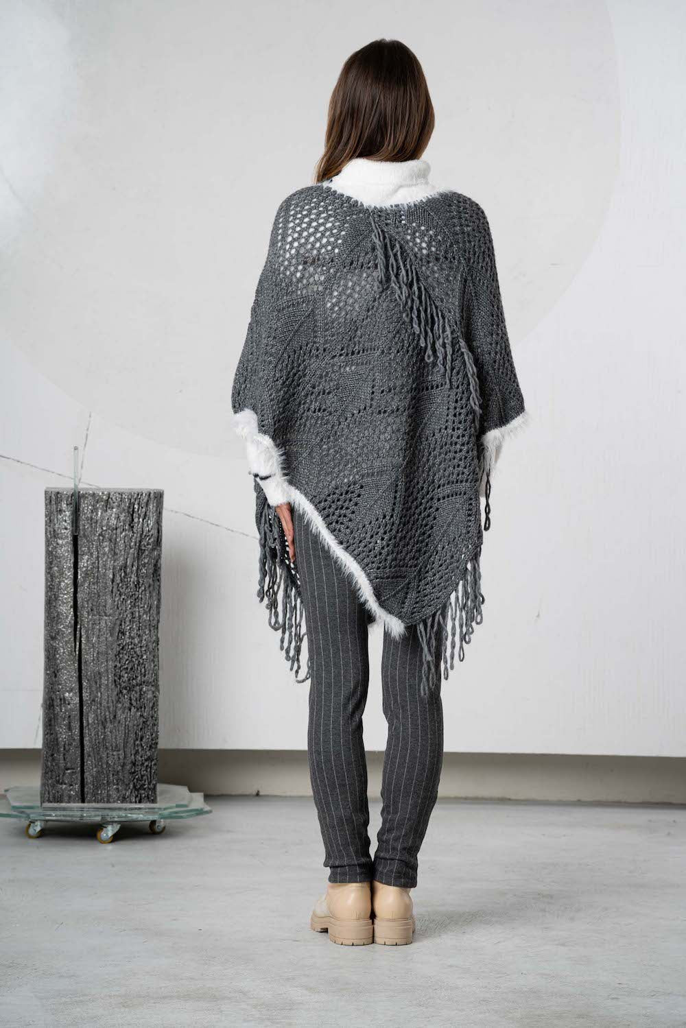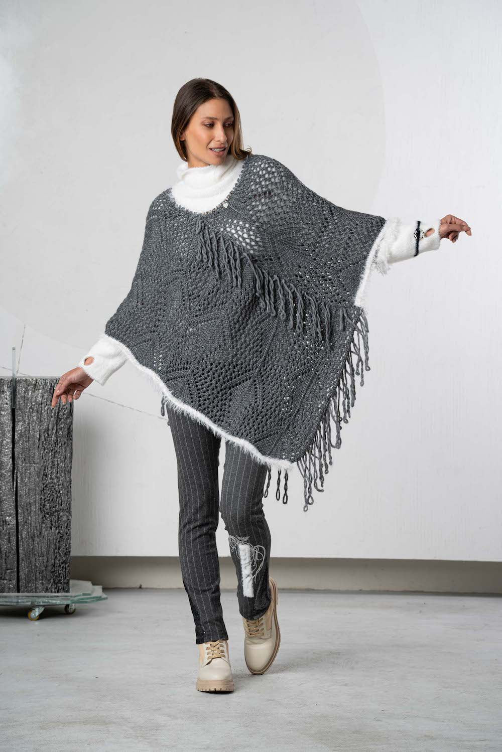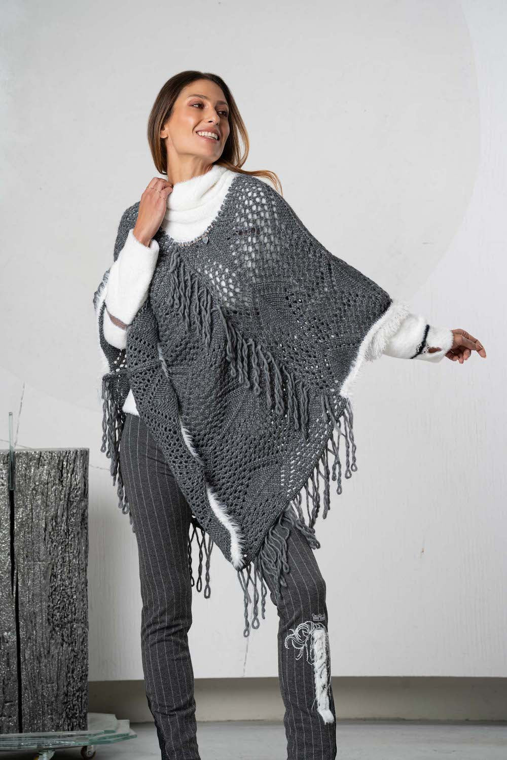 Craquez pour cette cape façon poncho en maille Italienne ELW254027100_23126 dans les tons de gris et blanc.