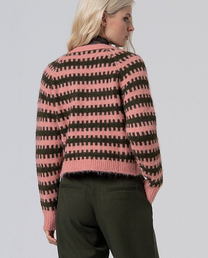 - maille épaisse à rayures rose et kaki