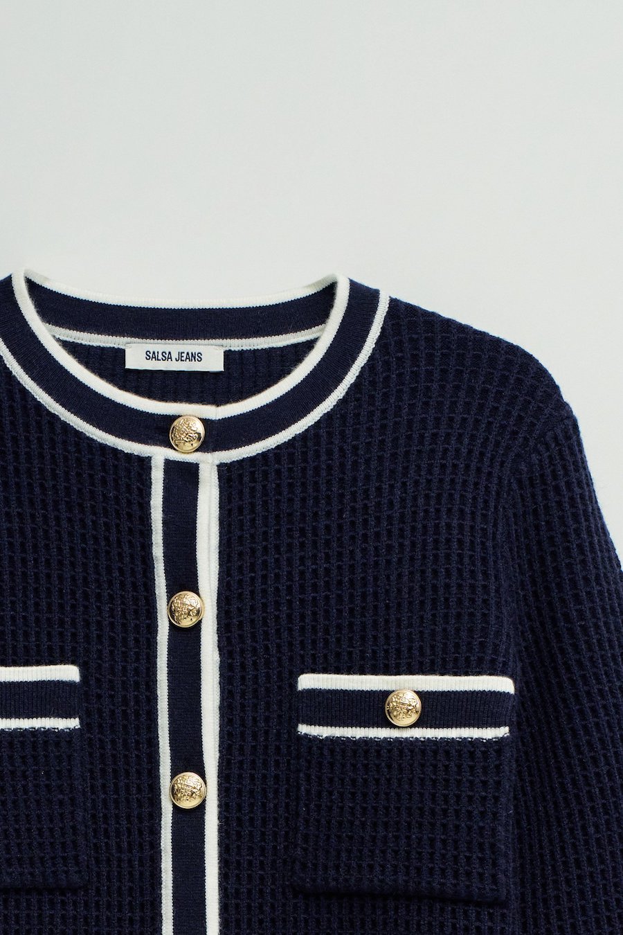 Gilet femme de la nouvelle collection salsa Jeans modèle façon Chanel en bleu