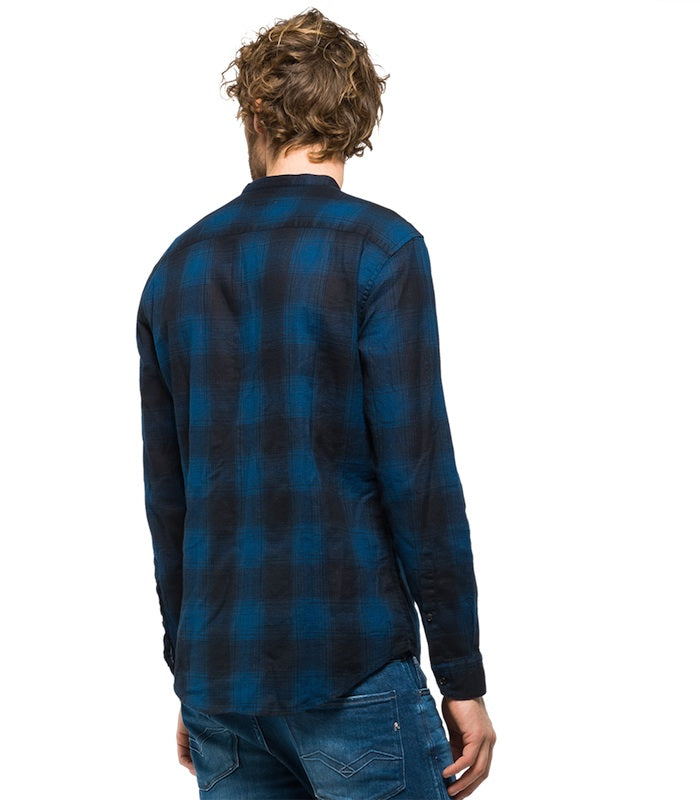 Chemise manches longues de la marque Italienne Replay, avec col officier M4948 en bleu et noir.