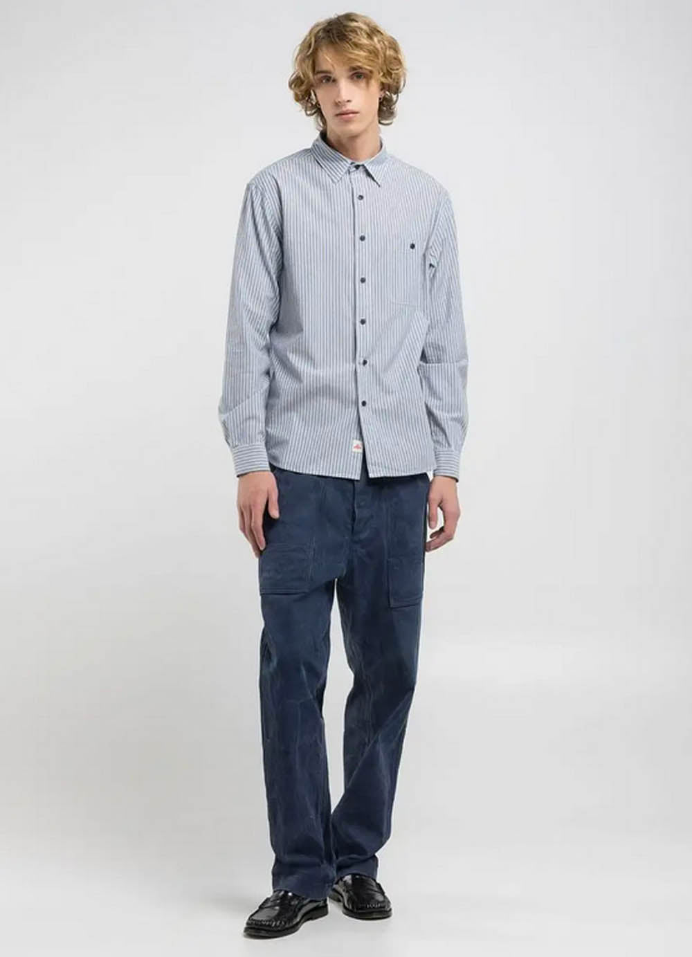 Chemise à rayure bleu et blanches manches longues fermeture boutonnée et poche poitrine plaquée avec bouton