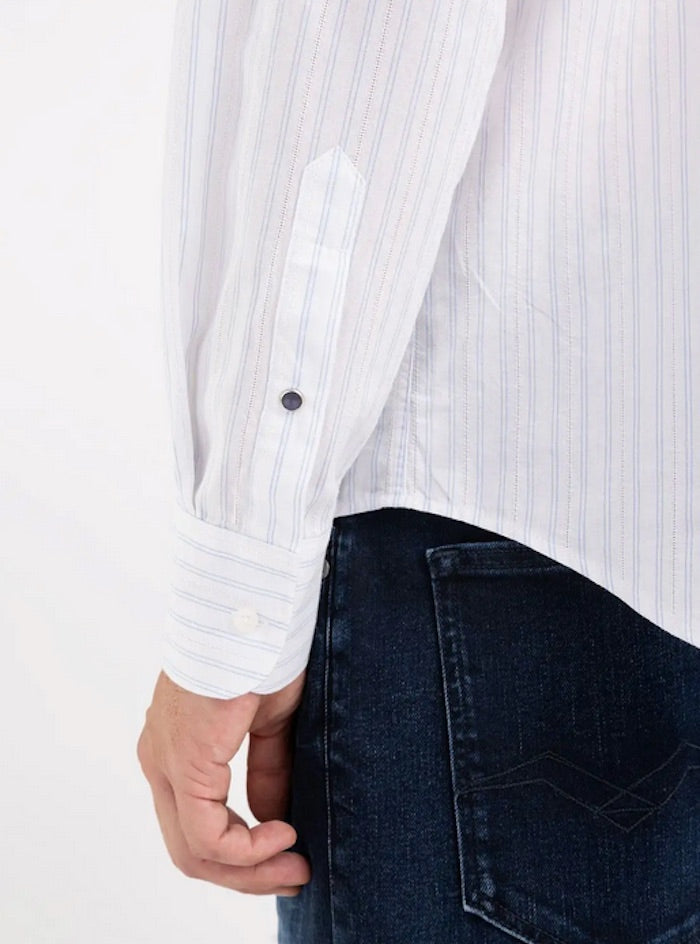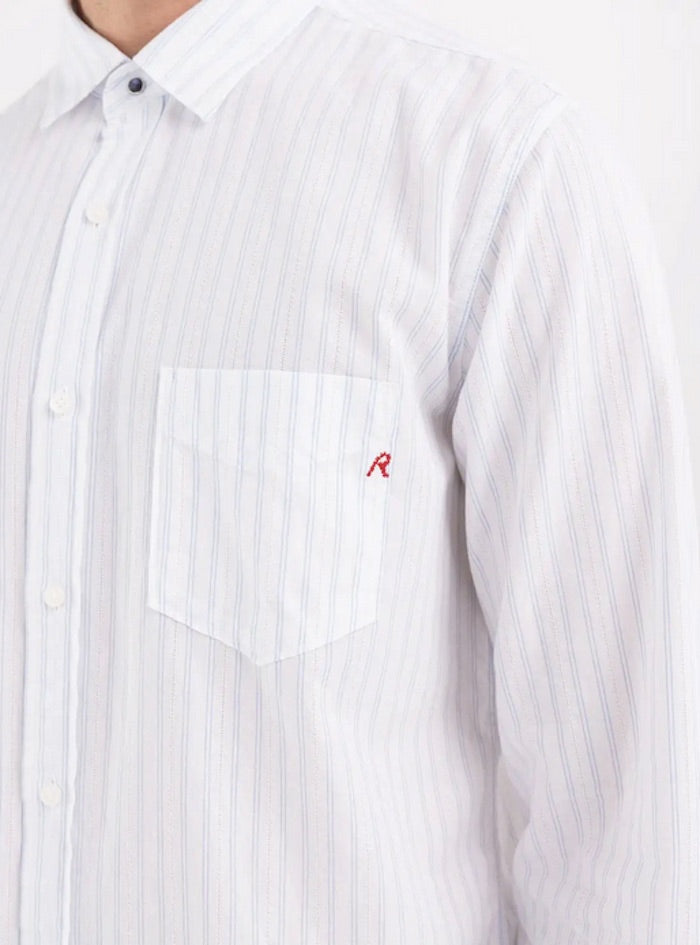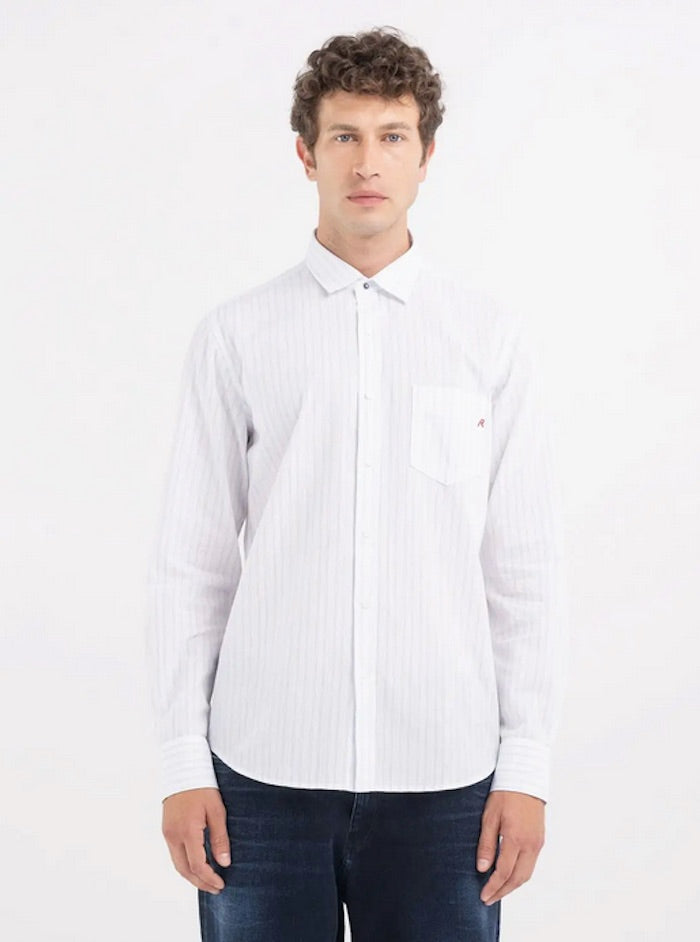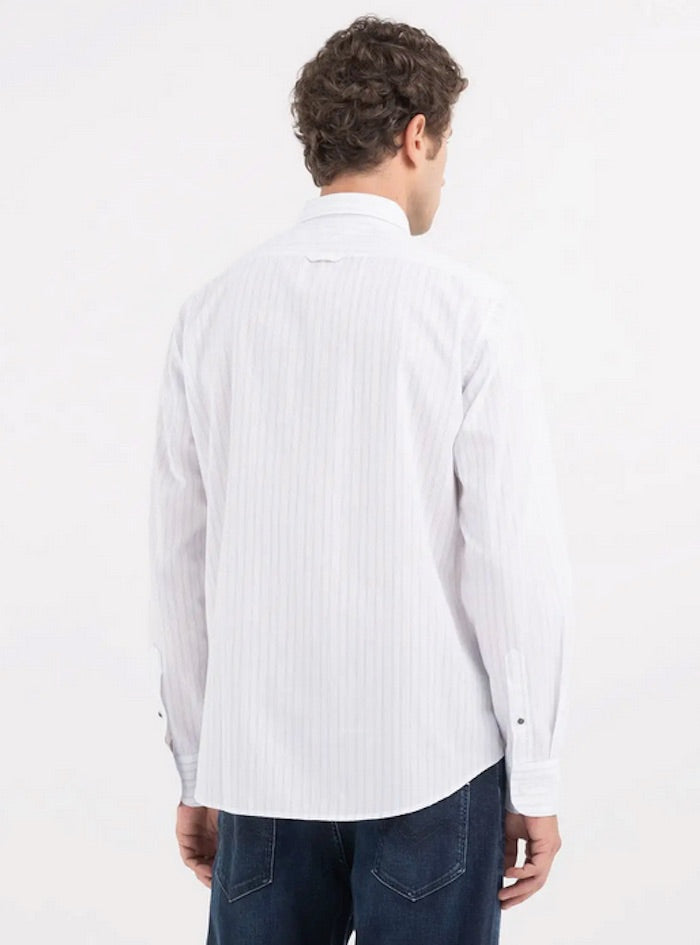 Chemise coupe normale en pur coton dobby avec fantaisie à rayures de la marque Replay Jeans référence M410652672010