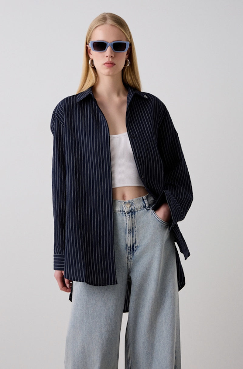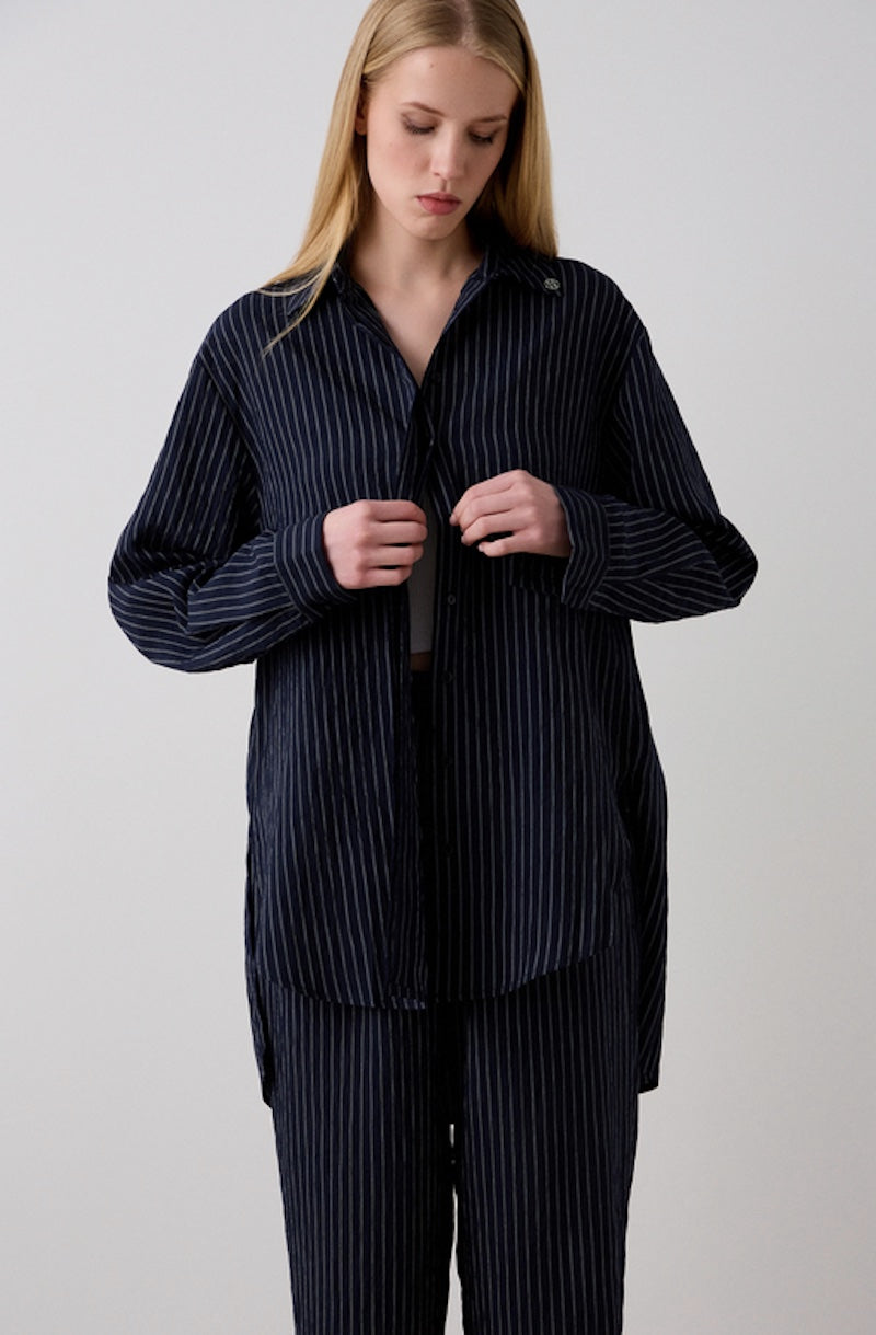 Chemise à rayures en modal coupe large de chez BSB 053-216022