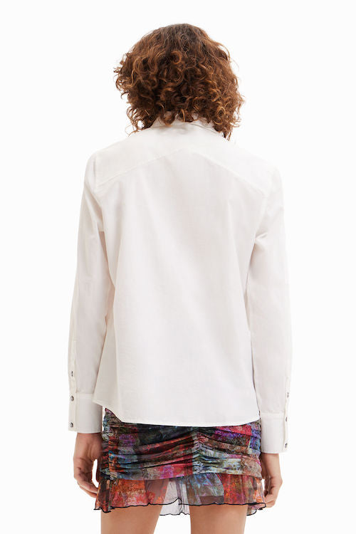 Référence Desigual 22WWCW06 1000 Chemise blanche à manches longues avec broderies BEAR