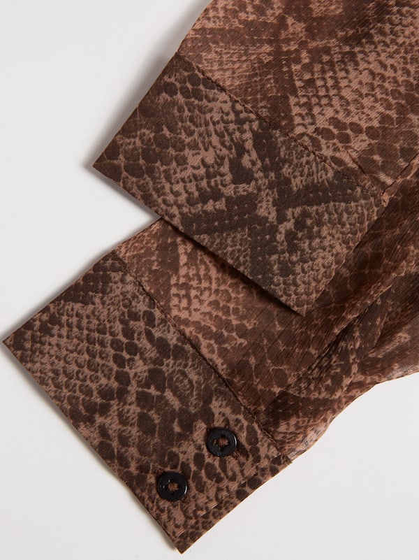 En tissu crêpé, la chemise Guess nous offre un magnifique imprimé python avec un col classique, des manches longues et une fermeture boutonnée frontale.