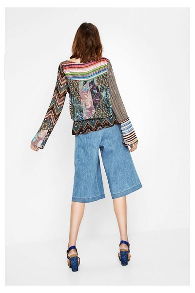 Chemise femme Desigual 72C2WG3 Modèle Lena en mousseline fluide avec petit élastic à la taille et bouton au niveau du col.
