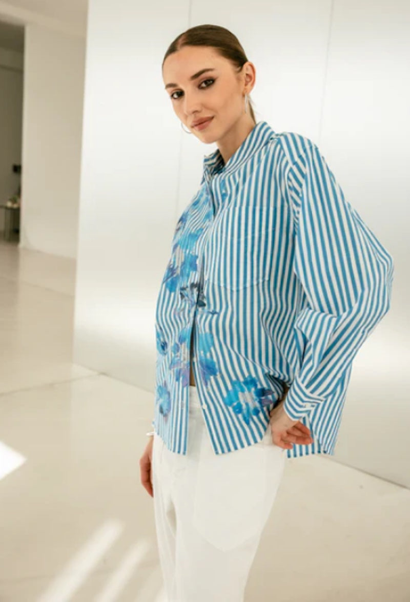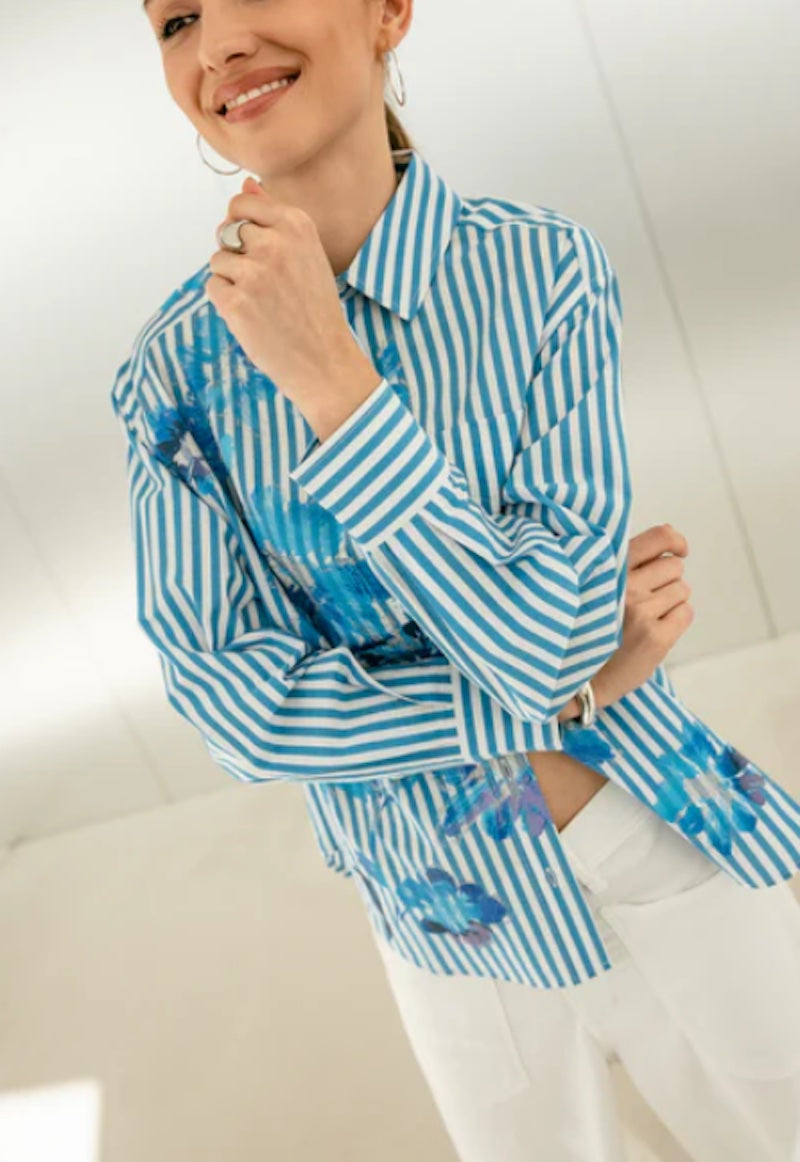 Chemise femme rayée et à fleurs Freeman Chella Bleached 26124754_CV85_F1438