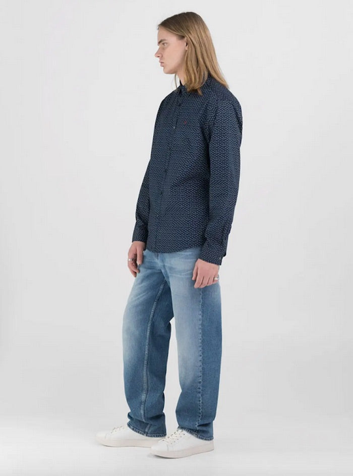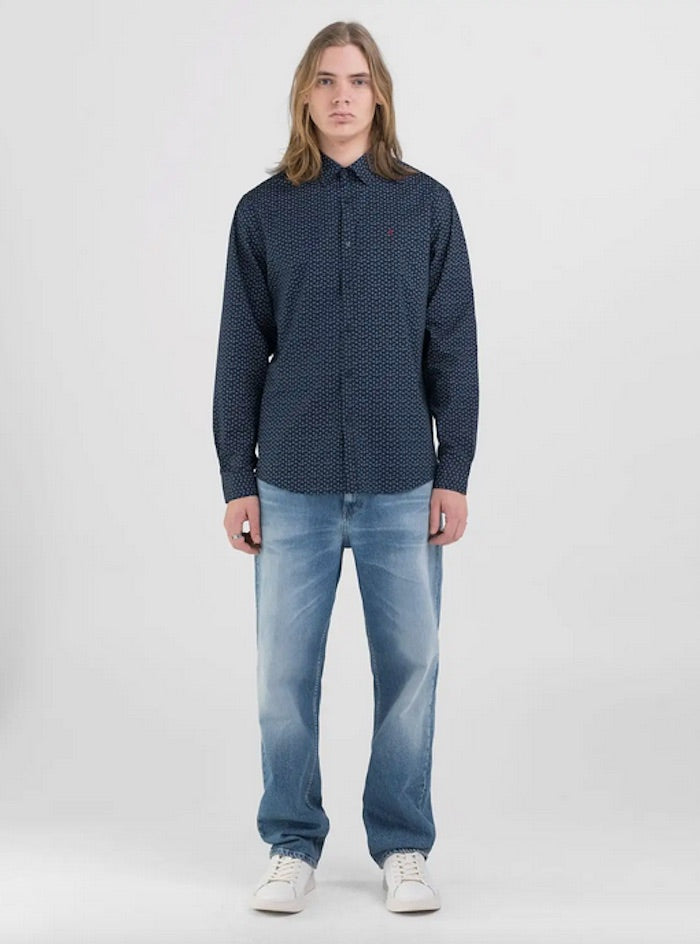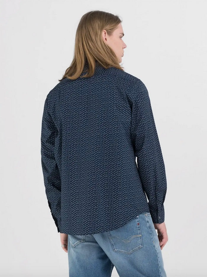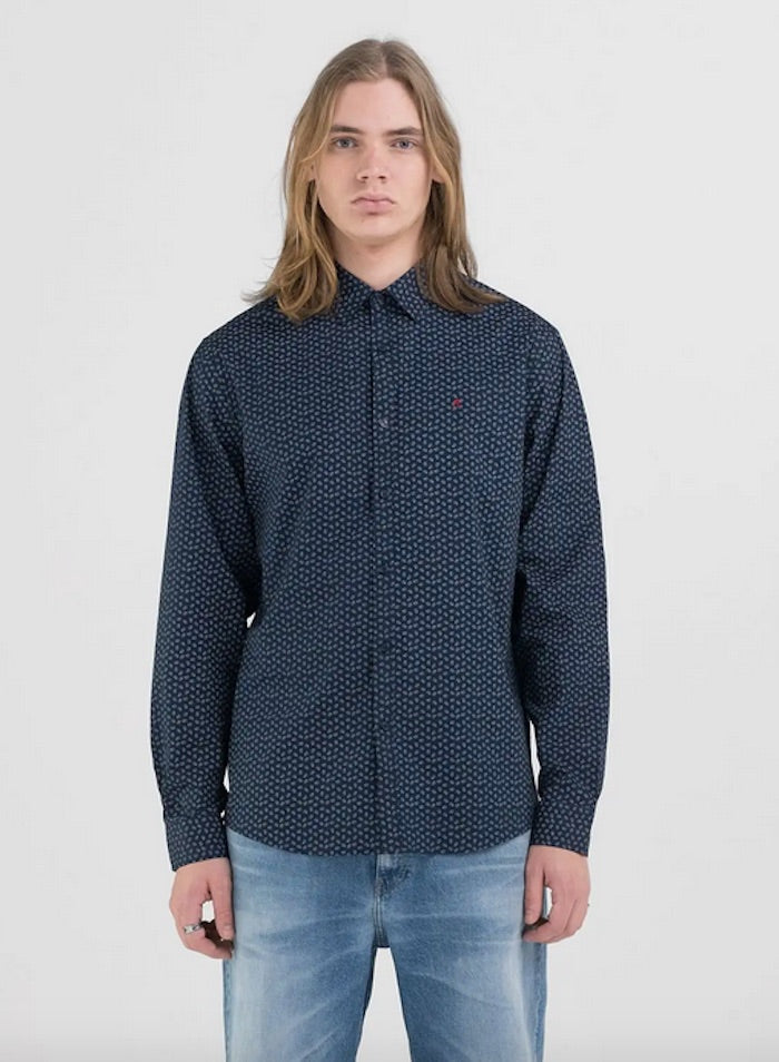 La chemise homme Replay M4118 74955 010 présente une coupe régular et un micro imprimé cachemire
