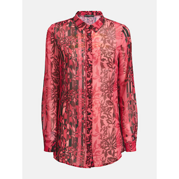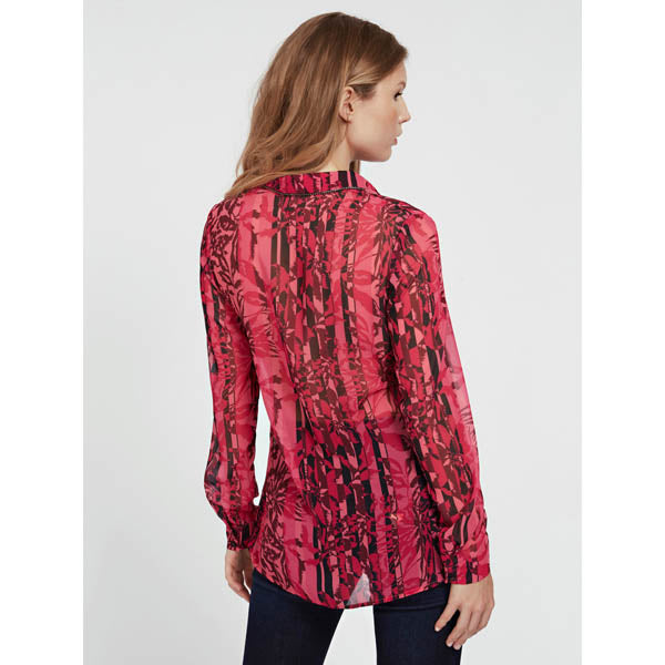 En tissu semi transparent, la chemise Guess est glamour et nous offre un magnifique imprimé de fleurs différentes et de rayures contrastantes.