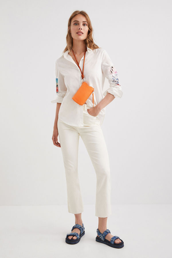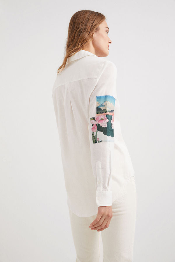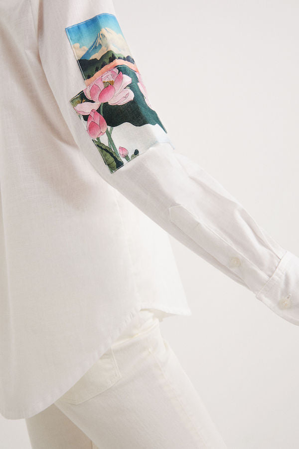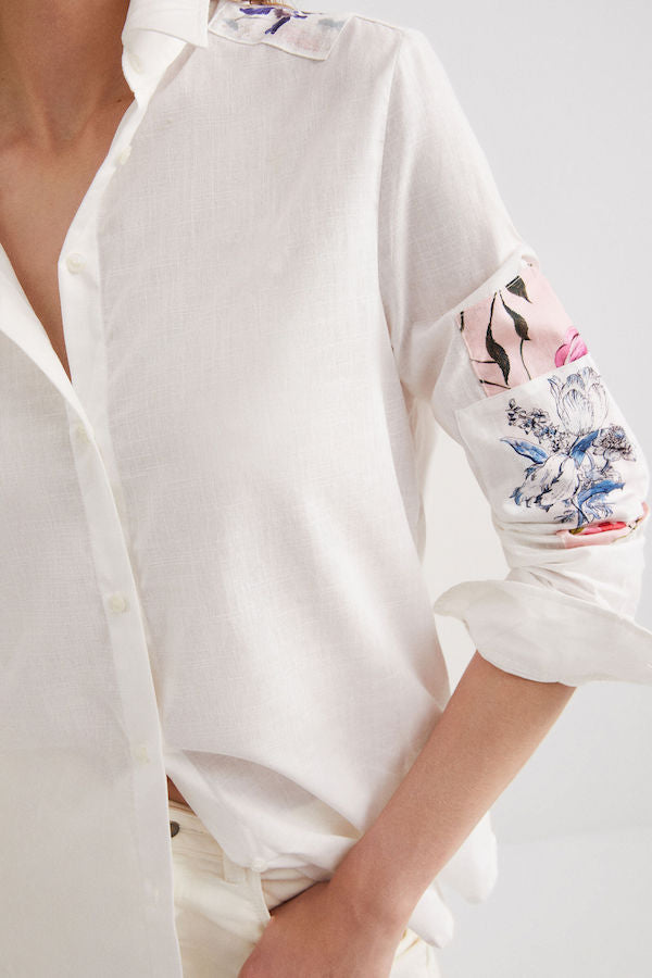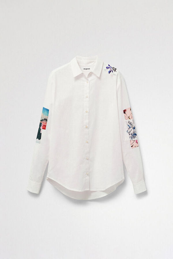 Avec ses patchworks de tissus imprimés sur les manches, la chemise Desigual en voile de coton est unique!