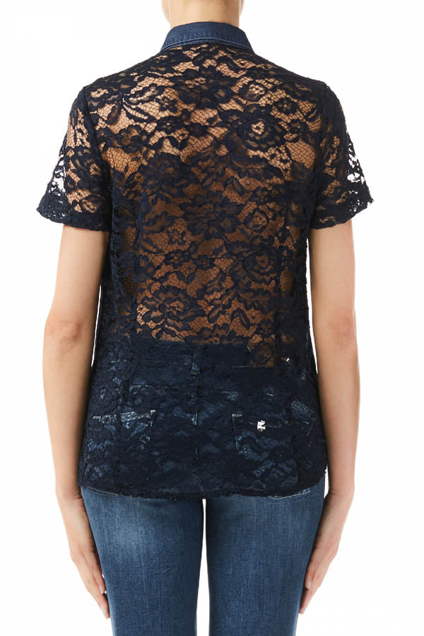 Liu Jo signe l'originalité ave sa chemise en jean à manches courtes avec manches et dos en dentelle. Elle possède 2 pinces poitrine et une coupe ajustée.
