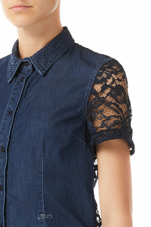 Référence Liu Jo U19068D4242 Chemise en jean avec dentelle