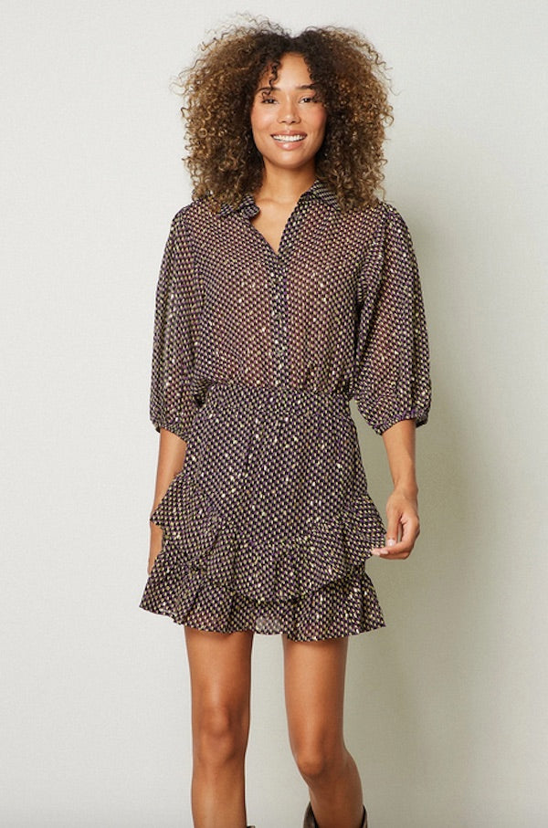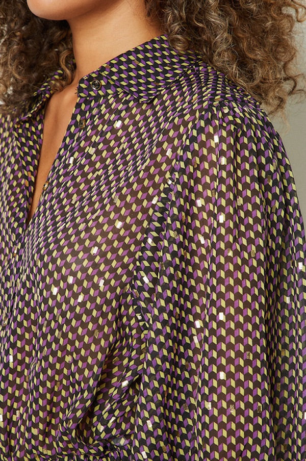 Imprimé coloré losanges et col chemise pour une luminosité exceptionnelle