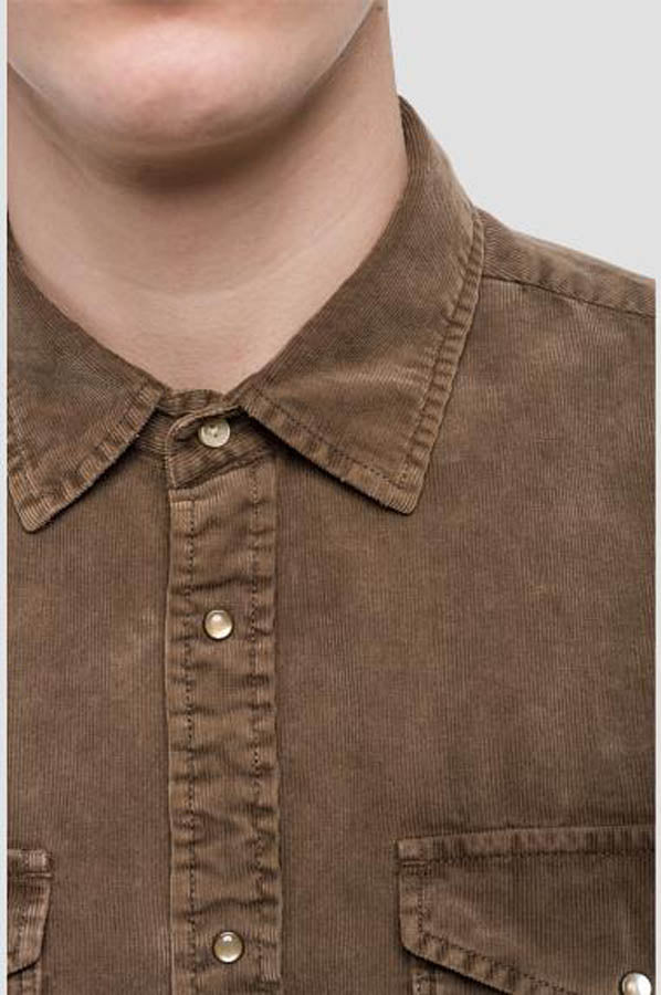 Sur un t-shirt ou sous un pull, la chemise en velours Replay possède des manches longues, un col classique, une fermeture par boutons-pression, et 2 poches à rabats sur la poitrine.