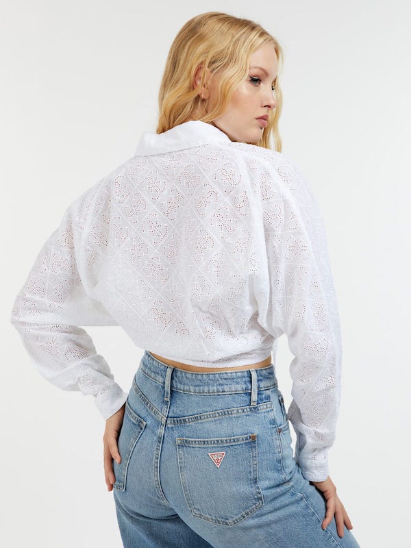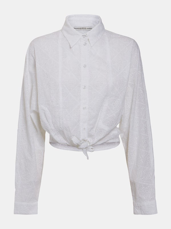 En coton, Guess joue l'élégance et le glamour avec sa chemise Tina intégralement brodée du logo 4G.