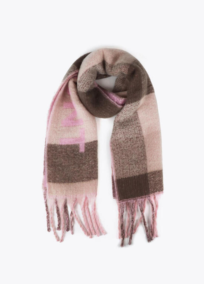 Écharpe chaude et colorée Lola Casademunt LF2507008 GRIS ROSE avec bords frangés qui s'accompagnera aussi bien avec un jeans qu'une belle robe d'hiver