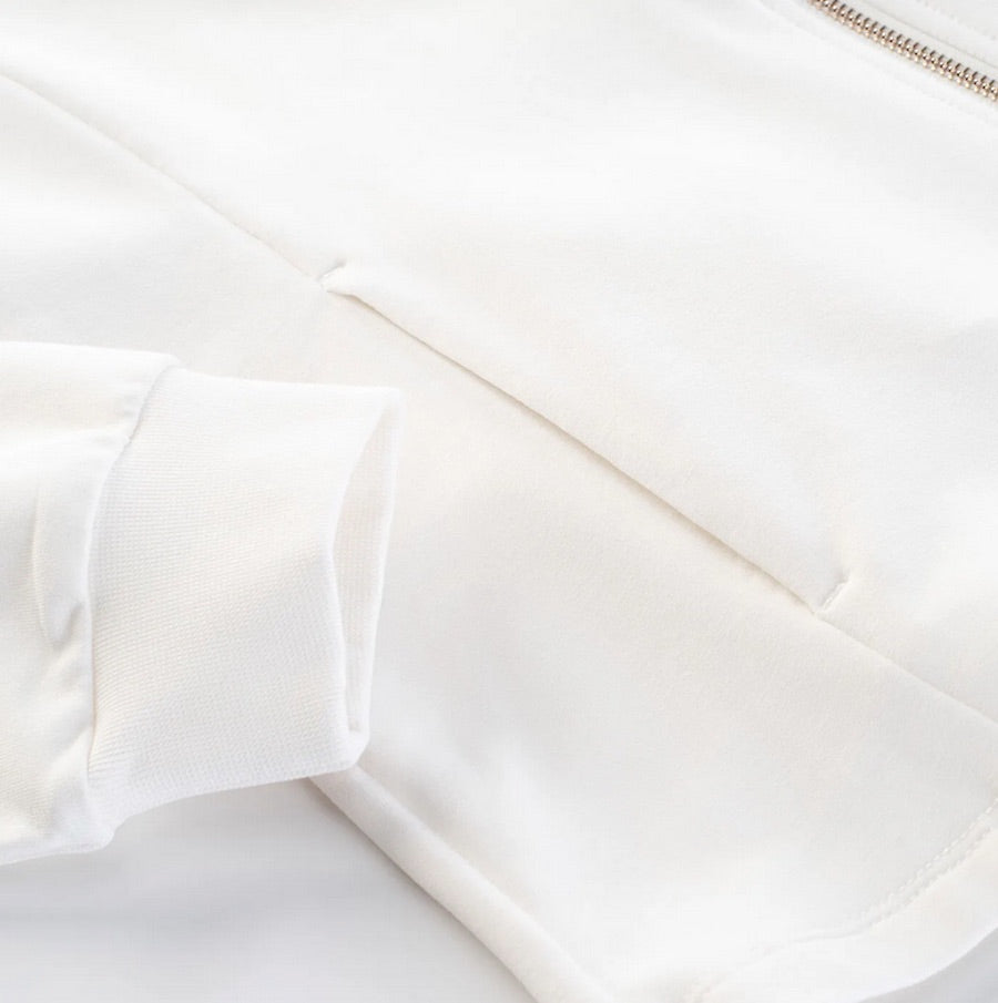 Modèle blanc cassé avec zip sur la partie haute et coupe régular slim