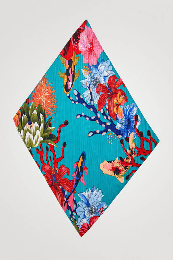 Avec son imprimé de coraux turquoises, le foulard plissé Desigual mettra de la couleur vos tenues les plus sombres.