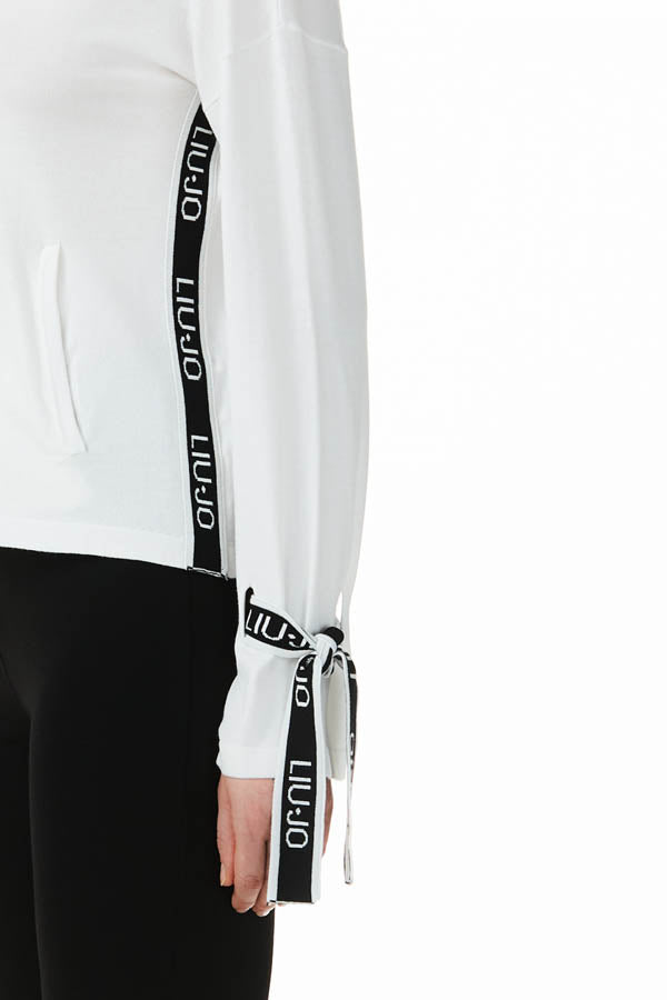 Le gilet Liu Jo possède une capuche, une fermeture zippée , des manches longues avec un ruban logoté contrastant au poignet.