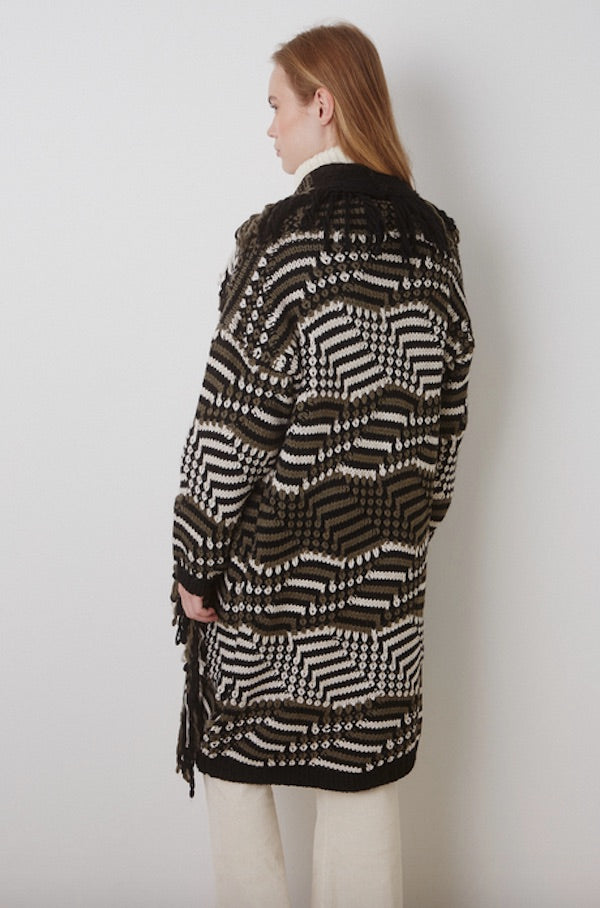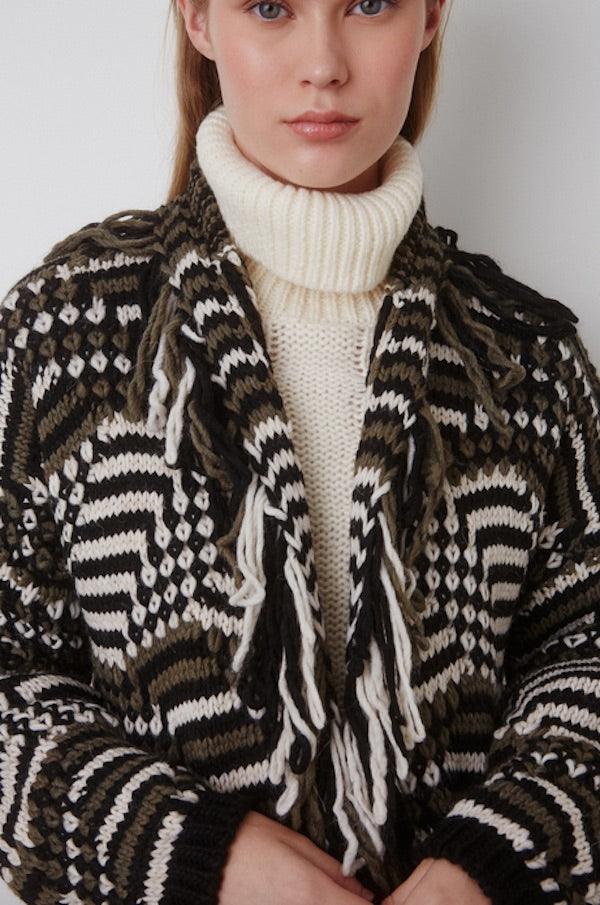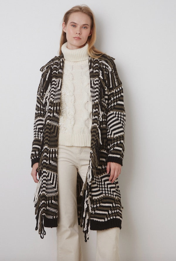 Gilet BSB en grosse maille 050-215004 modèle avec frange et dans une coupe droite.