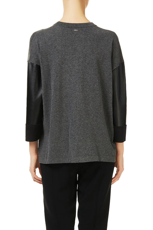 Gilet en maille fine de chez Liu Jo C67277MA99 modèle Aperta avec application de cuir écologique.