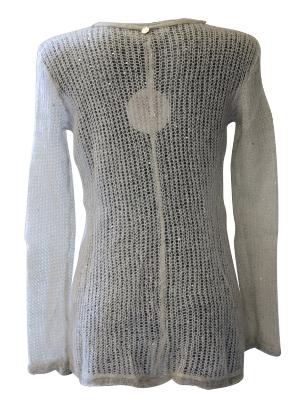 Un tricot écru ajouré orné de petits sequins scintillants pour un effet pailleté sur le gilet Nana Nucci.