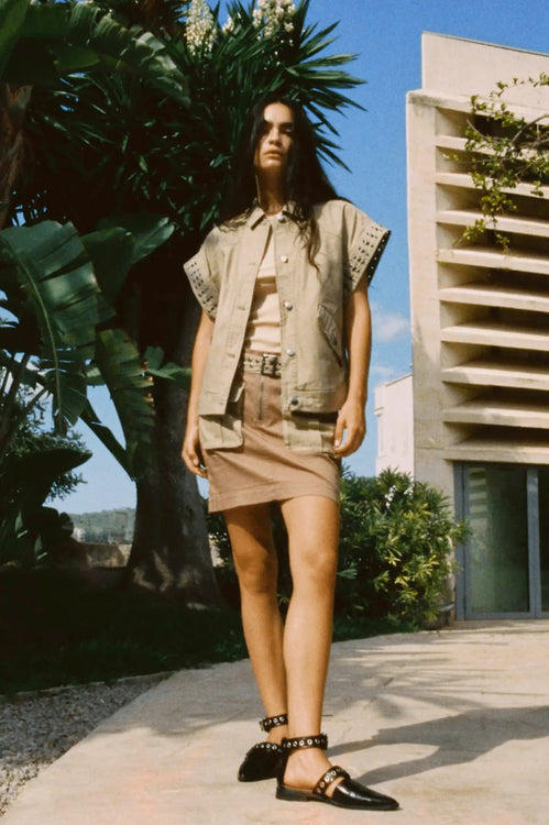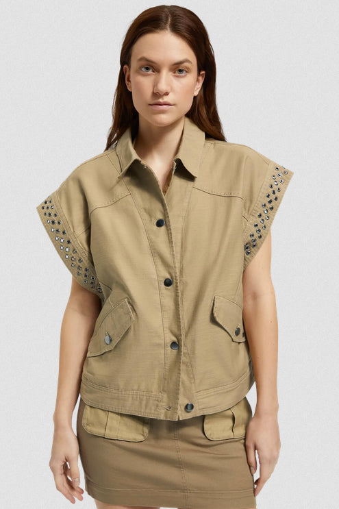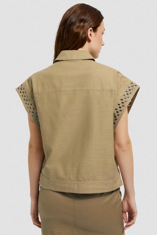Gilet sans manches avec ½illets métallique aux épaules poches à rabat sur les côtés fermeture boutonnée