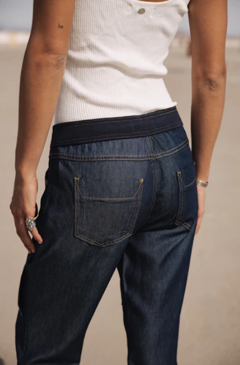 - délavage bleu foncé et surpiqures contrastées