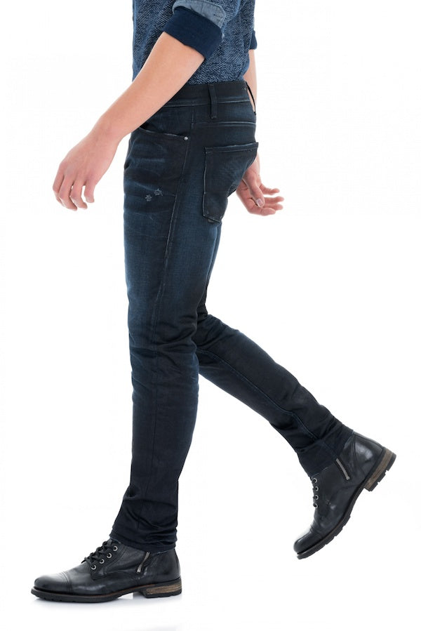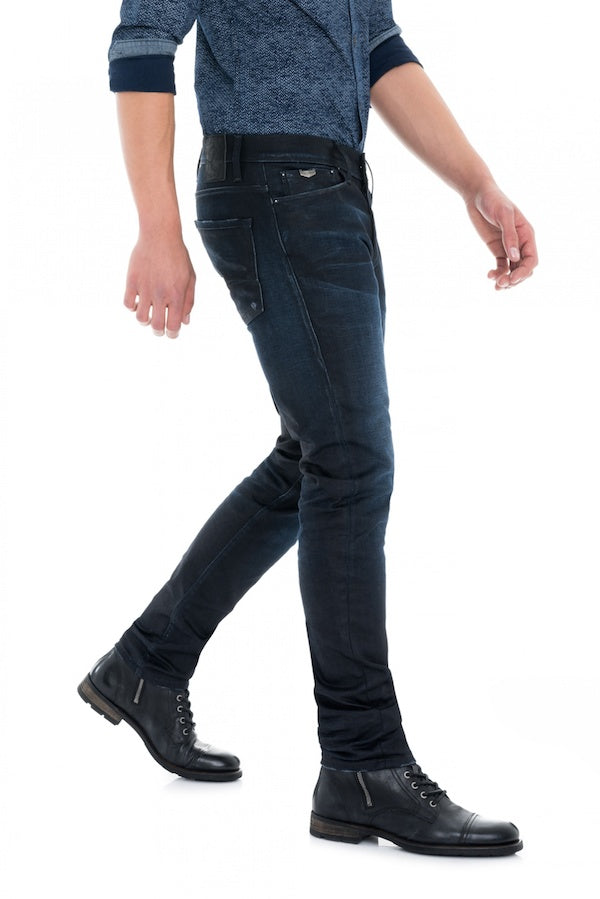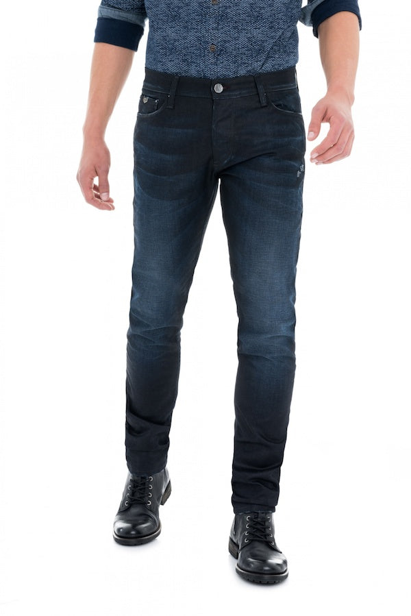 Jeans Salsa homme coupe slim carrot 117878 8504 dans un délavage marqué moustaché sur les cuisses.