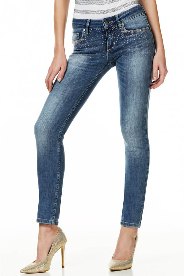 Jeans Liu Jo en coton, elastomultiester et élasthanne à délavé régulier légèrement blanchi sur l'avant de jambes, il nous propose un passe-partout hyperféminin éclairé par des détails lumineux qui apportent une touche précieuse à cette pièce.