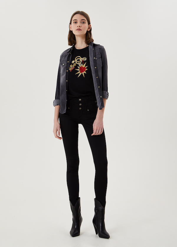 Passe partout taille haute noir, un magnifique basic à avoir absolument dans sa garde robe le jeans RAMPY taille haute Liu JO.