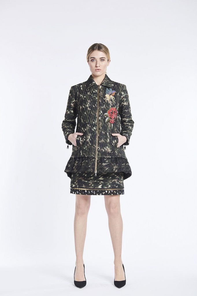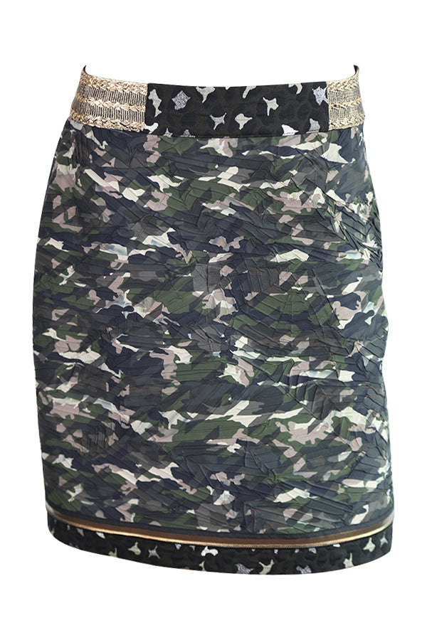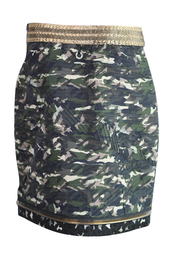 Jupe taille remontée Save the Queen 5482 aux imprimés kaki army avec de multiples finitions.