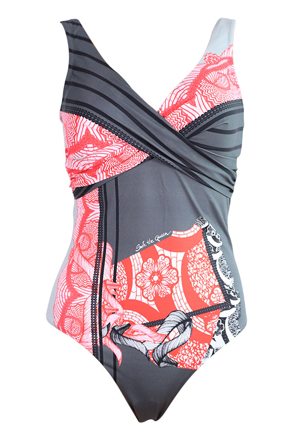 Le maillot de bain Save The Queen Sun Z251 dispose d'un décolleté en V en forme de cache coeur avec un léger drapé.