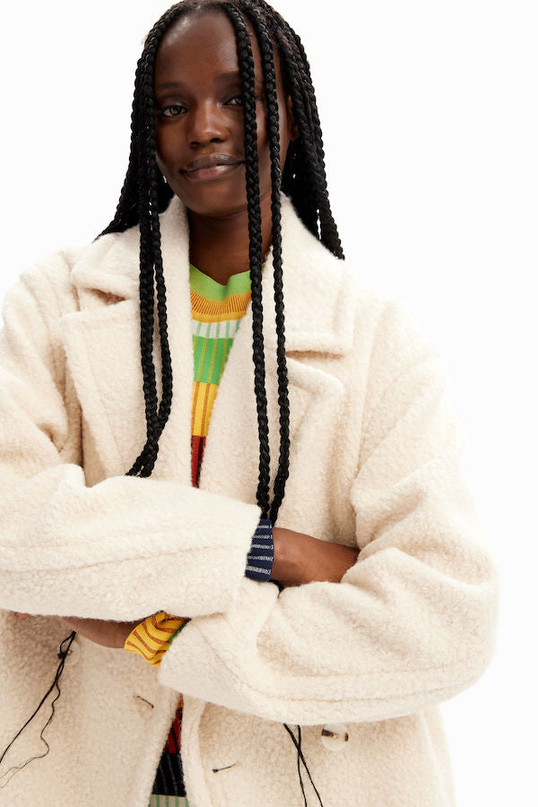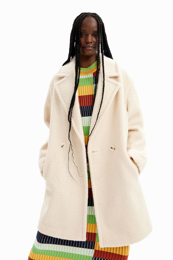 Manteau croisé de la marque Desigual 23WWEW211000 modèle en tissus effet bouclette, tout doux comme un ours en peluche