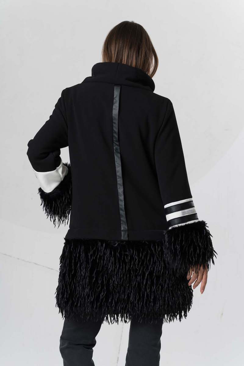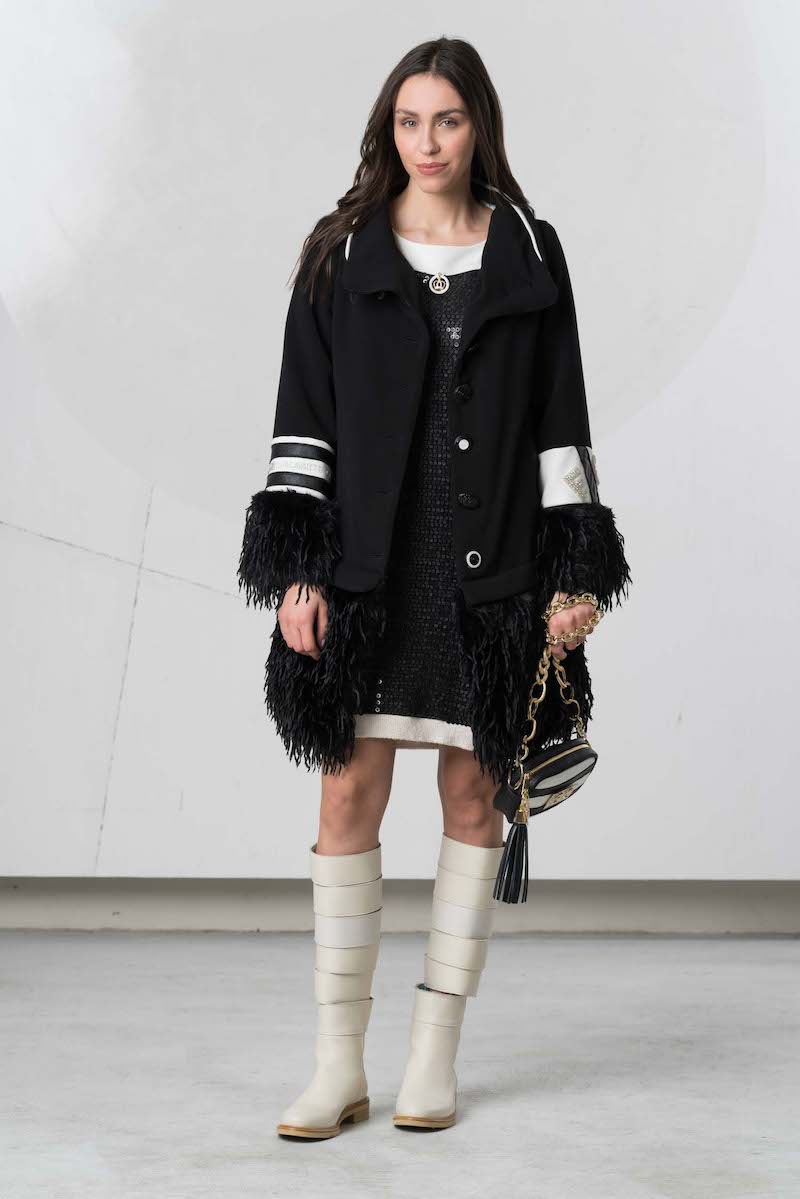 Un manteau d'hiver qu'il faut à tout prix avoir dans sa garde robe, avec un mélange de tissus et de finition détaillée toute réalisées en Italie par la maison de couture Elisa Cavaletti