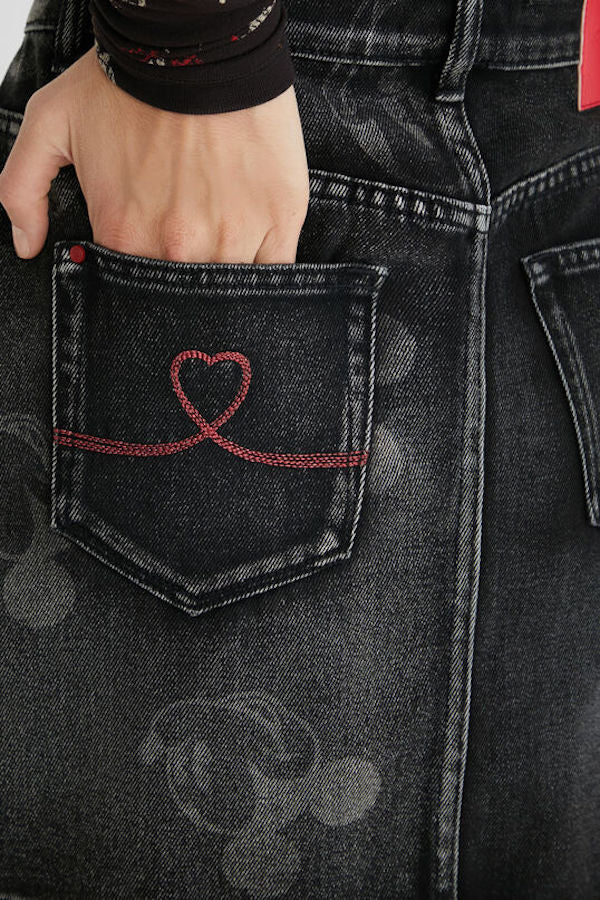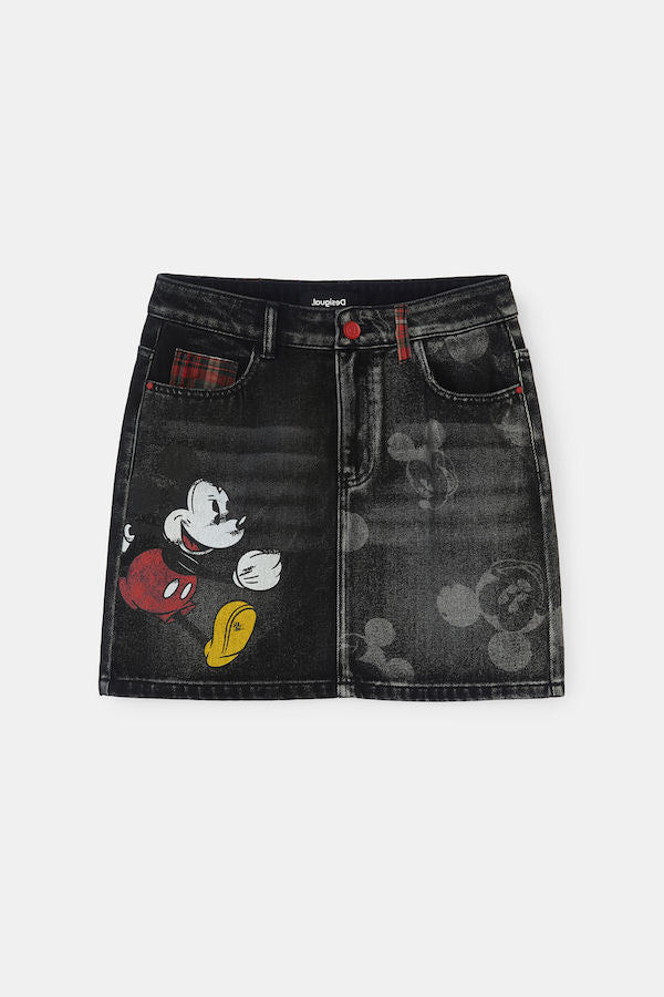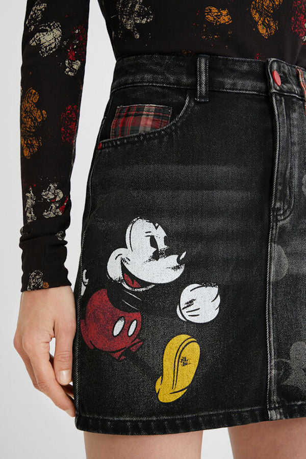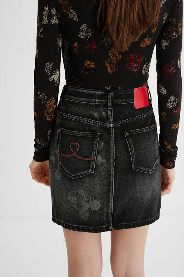 Originale, Desigual vous présente sa jupe en jean noire avec des illustrations dédiées à Mickey.