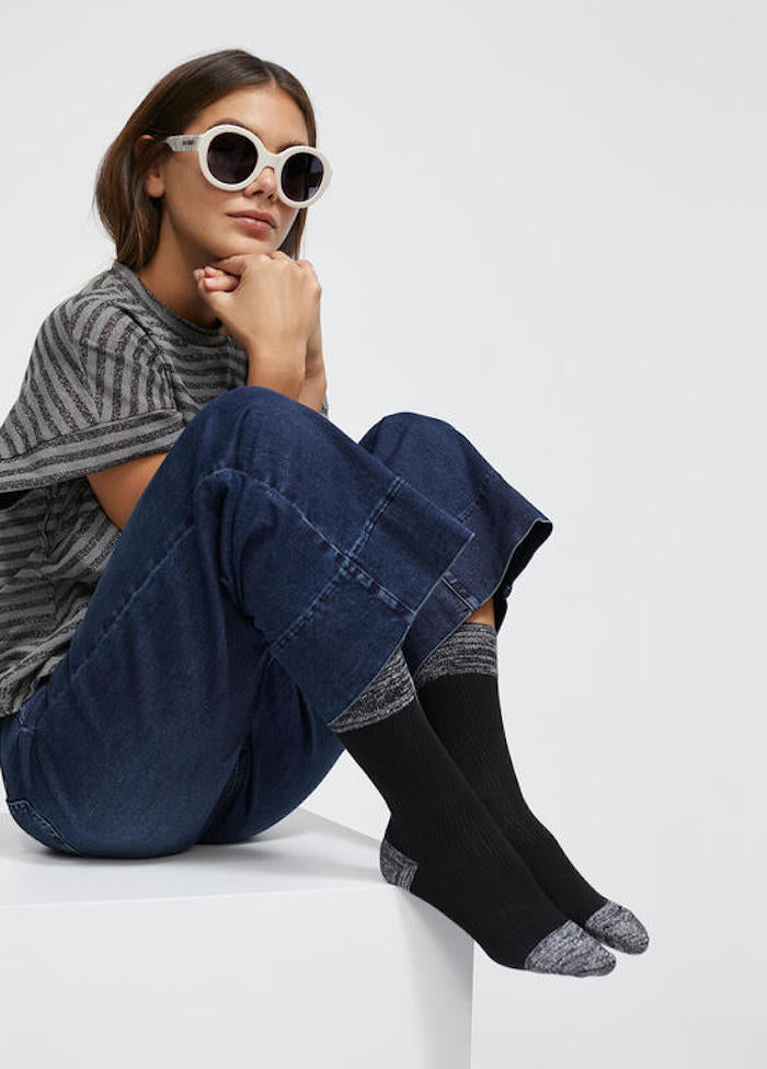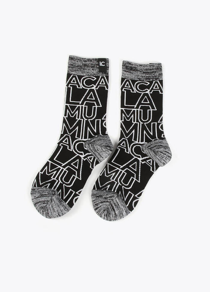 une paire est noir unie l'autre noir avec le logo Lola Casademunt