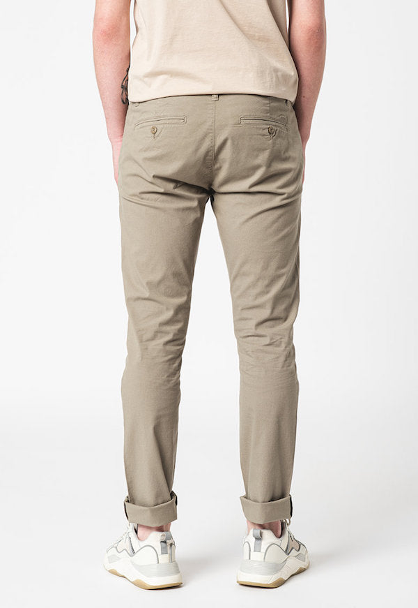 Le pantalon chino Daniel Guess possède une taille fermée par zip et bouton, des poches avants, des poches passepoiles au dos et des revers au bas des jambes.