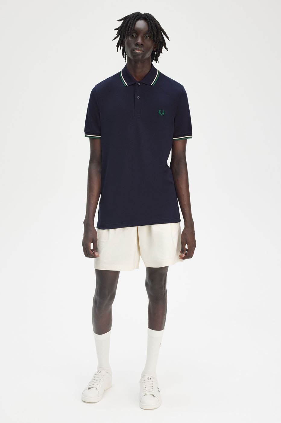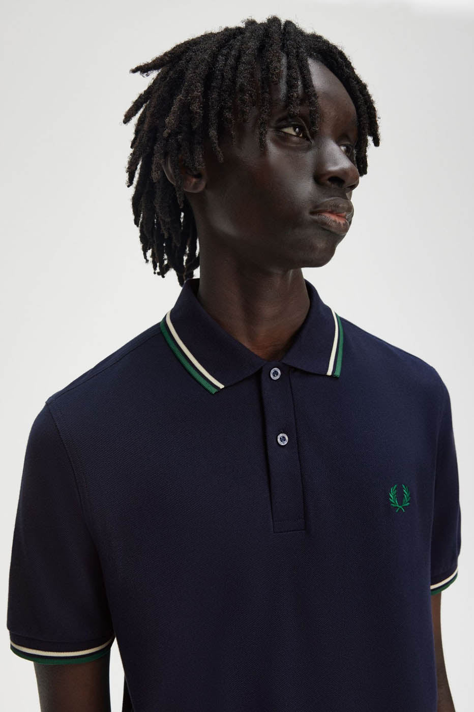 Référence Fred Perry M3600 Y30 gris carbone foncé/ écru clair/ vert étiquette