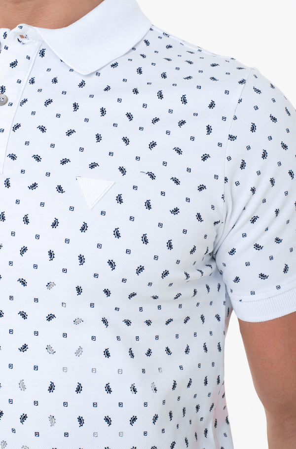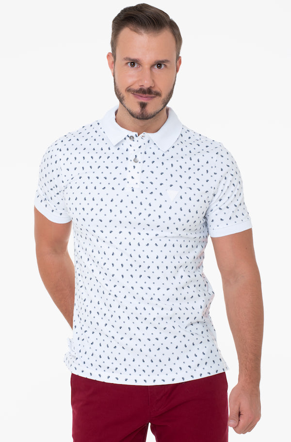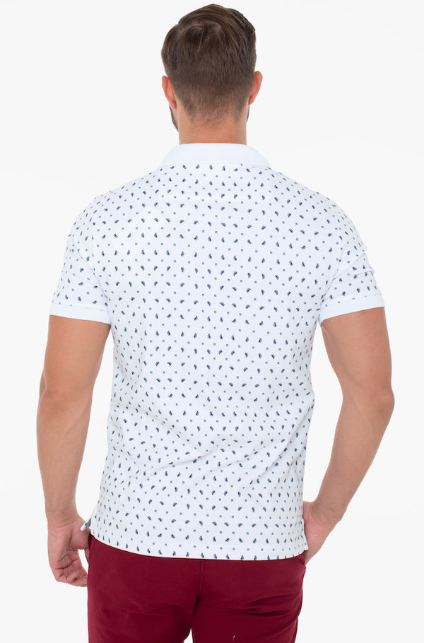 Polo élégant d'une base blanche réhaussé par un imprimé bleu