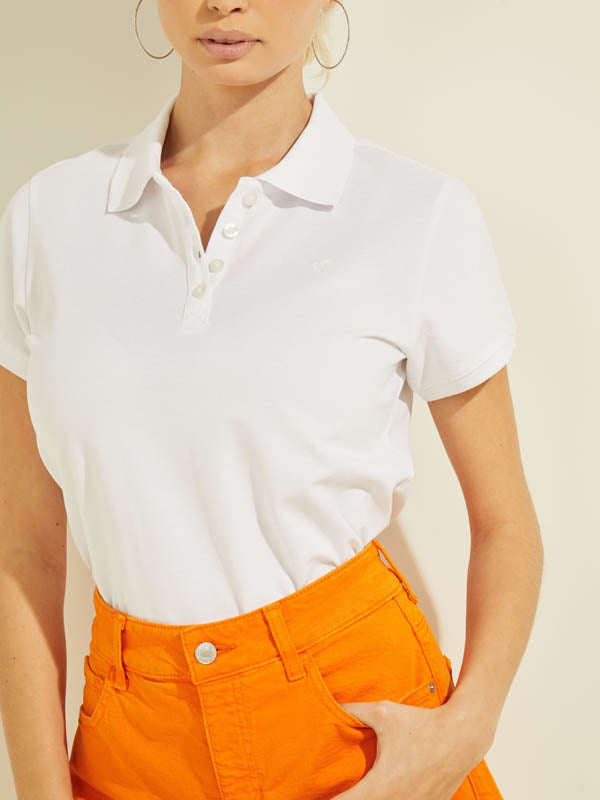 Référence Guess W1YP38 RAQS0 G011 Polo logo brodé blanc