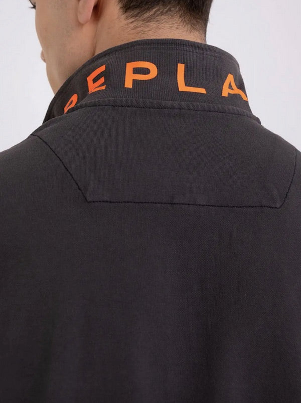 Un modèle slim à manches courtes qui se porte de deux manière, soit le col bas, basic plus classique, soit le col rehaussé avec inscription logo Replay en fluo.